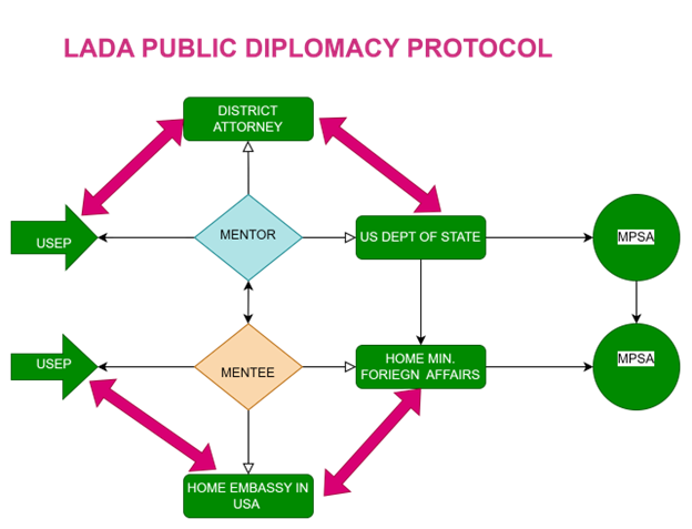 The MPSA is designed for US underserved communities/groups, it begins with a preliminary Mentorship Agreement (PMA) between of a US company and a mentee international company which then culminates in the input US state authorities, US department of State, Embassies and Ministries of foreign affairs of participating foreign nations to achieve its aim of develop the world while developing America.